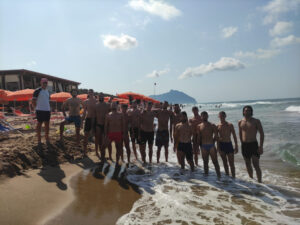 La preparazione dell’Opus Sabaudia sta incuriosendo la città, i turisti e più in generale tutti gli appassionati della grande pallavolo. La formazione pontina, pronta a tornare in campo per il campionato di pallavolo maschile di serie A3, ha scelto di trascorrere alcune giornate di allenamento sulle famose Dune di Sabaudia, la splendida spiaggia del litorale laziale meta storica di tantissimi turisti, di star del cinema e del mondo della tv oltre che di tantissimi calciatori, con l’inconfondibile sagoma del promontorio del Circeo sullo sfondo. Quella scelta dalla formazione di Sabaudia è una location assolutamente spettacolare, il lido attrezzato dello Sporting Beach, sul lungomare tra i più famosi e desiderati della regione Lazio. Occhi sbarrati, almeno all’inizio, per i bagnanti che si sono ritrovati i pallavolisti a poche decine di metri di distanza dai loro ombrelloni, in una zona dello stabilimento a loro riservata: dopo la sorpresa iniziale però, i turisti hanno iniziato a seguire gli atleti nella seduta sulla sabbia del campo da beach volley, per poi spostare l’attenzione anche sulle esercitazioni svolte in acqua da tutto il gruppo. Questa emozionante fase di allenamento in spiaggia è proseguita sotto lo sguardo attento di coach Mauro Budani che non s’è risparmiato e ha fornito indicazioni e consigli agli atleti con la presenza dei dirigenti del Club pontino che hanno apprezzato la seduta tecnica e fisica.