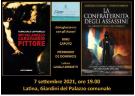 Stasera, alle ore 19, presso i Giardini del Palazzo comunale di Latina, all’interno del programma “Estate in Comune”, organizzato dal Comune di Latina, avrà luogo la presentazione di due romanzi storici: Michelangelo Caravaggio pittore di Giancarlo Loffarelli (Porto Seguro editore) e La confraternita degli assassini di Marcello Ciccarelli e Bruno Di Marco (Newton Compton editore).