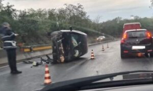 Nella circostanza la vettura si è ribaltata sul fianco sinistro terminando la corsa nella corsia parallela.