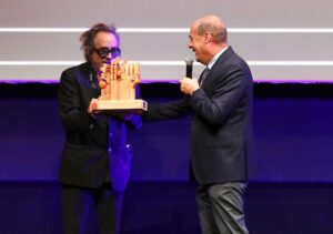 Il Presidente della Regione Lazio, Nicola Zingaretti, ha consegnato domenica mattina, all’Auditorium Parco della Musica a Roma, al regista Tim Burton il premio “LAZIO, TERRA DI CINEMA”, il riconoscimento onorifico, istituito dalla Regione Lazio, destinato a personalità del mondo del cinema e dell’audiovisivo che si siano particolarmente distinte per il loro impegno e per i risultati conseguiti nel settore.