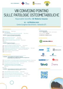 Si terrà a Sabaudia venerdì 15 e sabato 16 ottobre, presso il Centro Congressi dell’Hotel Oasi di Kufra, l’VIII Convegno Pontino sulle patologie Osteometaboliche. Responsabile scientifico il dottor Roberto Cesareo, endocrinologo, direttore della UOS “Malattie Metaboliche e gestione del paziente cronico riacutizzato” presso l’Ospedale “S.M. Goretti” di Latina. Il convegno vede il supporto scientifico dell’Associazione Tendi la Mano AIPOM, dell’Università Campus Biomedico di Roma ed il patrocinio della Asl di Latina, del comune di Sabaudia e del Lions Club Sabaudia San Felice Circeo Host .
