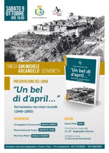 L’appuntamento con la presentazione di “Un bel dì d’april… Sermoneta nei miei ricordi (1940-1950”)” è dunque per il prossimo sabato 9 ottobre, alle ore 16,00, nella Chiesa di San Michele Arcangelo, a Sermoneta.