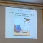 Centauri, nel corso di due ore, ha avuto modo di introdurre gli intervenuti alla complessa arte dell’assaggio, sfatando alcuni dei più radicati luoghi comuni che vorrebbero, ad esempio, l’olio di semi meno grasso dell’extravergine di oliva, sottolineando che l’amaro è un attributo positivo dell’olio, insieme al fruttato e al piccante. Il sapore amaro è dato dai polifenoli, sostanze antiossidanti che proteggono dall’ossidazione sia l’olio che le cellule dell’organismo dell’uomo, e quindi assolutamente positive. L’amaro è caratteristico di un olio ottenuto da olive verdi o appena invaiate, oppure da olive che appartengono a varietà con alto contenuto in fenoli. Grazie agli assaggi presentati, gli studenti hanno così potuto comprendere quanto sia importante l’analisi sensoriale dell’olio e quali sono i passaggi necessari a certificare la rispondenza del prodotto ai requisiti previsti dal disciplinare dell’olio extravergine d’oliva DOP “Colline Pontine” che ha ottenuto di recente l’ambito riconoscimento da parte dell’Unione Europea.
