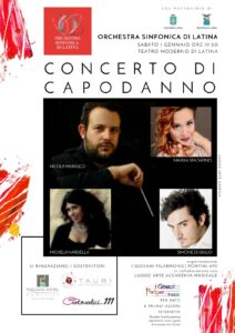 Nasce l’Orchestra Sinfonica di Latina e debutta con il Concerto di Capodanno. L’appuntamento augurale è per sabato 1° gennaio 2022 alle ore 19.00 al Teatro Moderno di Latina in via Sisto V. L’Orchestra Sinfonica nasce per volere dell’Associazione di Promozione Sociale “I Giovani Filarmonici Pontini”; «fondare un’orchestra sinfonica, con tutti musicisti latinensi, è un vanto per la città che finalmente comincia ad avere un’identità indipendente dalle sue molteplici origini – ha affermato il direttore artistico de I Giovani Filarmonici Stefania Cimino – l’obiettivo è realizzare una stagione di concerti ospitando, in qualità di special guest, i musicisti della provincia, che rappresentano un fiore all’occhiello per il territorio».