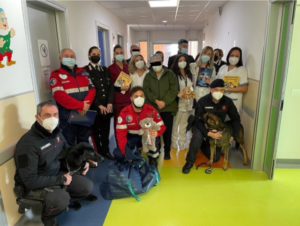 L’incontro è stato animato dalla presenza dei cani Dingo e Kent del Reparto Cinofili Carabinieri di Santa Maria di Galeria e di alcune note natalizie intonate per allietare il momento.
