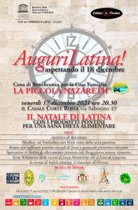 Si terrà Venerdì 17 Dicembre alle ore 20.30, la cena di beneficenza per celebrare il compleanno di Latina.