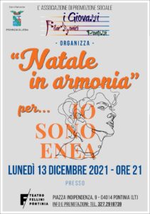 Il concerto “Natale in Armonia” per IO SONO ENEA organizzato dall’Associazione di Promozione Sociale “I Giovani Filarmonici Pontini” vede il patrocinio della Provincia di Latina.