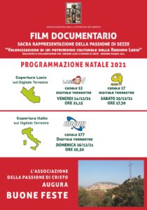 Feste di fine anno con la Passione di Cristo di Sezze in televisione. In un particolare momento, come quello delle festività natalizie e con due anni di assenza causa Covid della tradizionale manifestazione che si svolge il venerdì santo lungo le vie del centro storico di Sezze, l’Associazione della Passione di Cristo ha voluto fare un regalo ai cittadini e a coloro, che in tutta Italia, sono legati a questo evento. Nei giorni di Natale, infatti, sarà riproposta la trasmissione del film documentario che è stato realizzato nei mesi scorsi e che ha avuto grande successo in occasione della sua messa in onda durante la settimana santa.