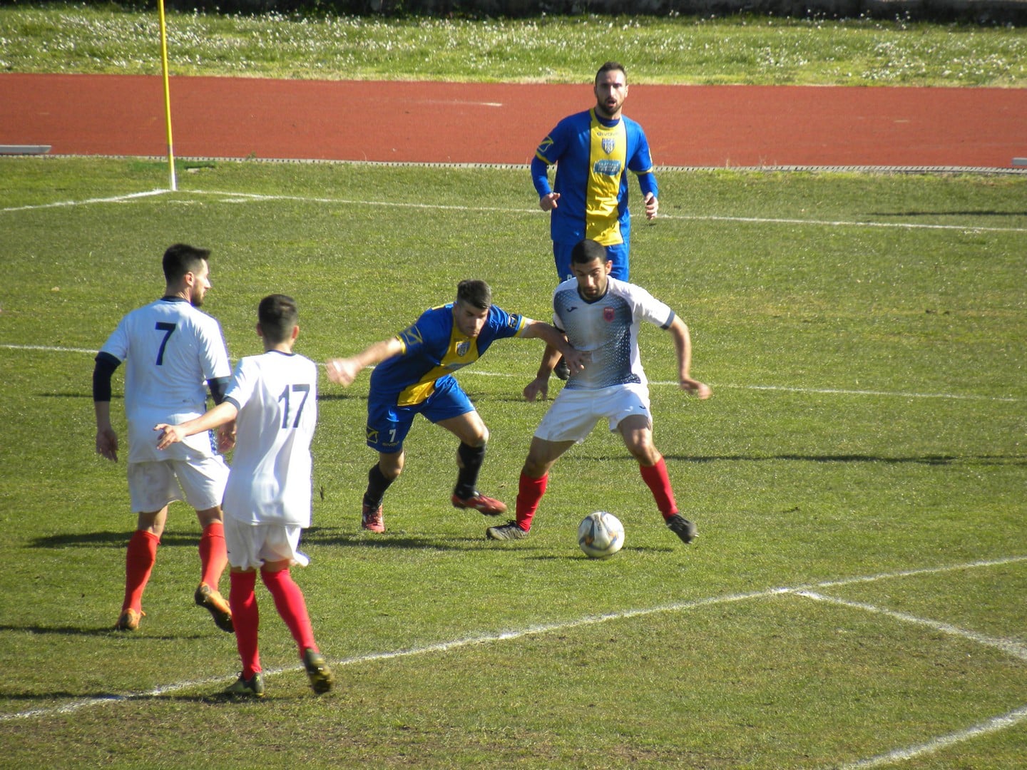 La Vis gioca con prudenza e attenzione, calcolando i tempi degli avversari e pronta a ripartire senza lasciare punti di riferimento, grazie alla mobilità del tridente rossoblù; così, anche Palluzzi prova a centrare l’obiettivo mancato dal compagno Onorato, ma il suo tiro è debole e impatta contro i piedoni di Lisi, uscito in copertura. Da qui, la Vis sembra sparire dal campo. Al 24’ pt è Compagno che ripiega in maniera salvifica e si intromette, spezzando in angolo un’azione bollente degli ospiti che, tuttavia, trovano il gol un solo minuto più tardi, quando Giglio stacca di testa, colpevolmente indisturbato, e batte Paccariè. Monte S. Giovanni Campano dimostra maggior lucidità, mentre i leoni di mister Catanzani non riescono a ritrovare il bandolo della matassa, sprecando molto soprattutto in fase di gestione; al 33’ pt Carfora fa saltare gli schemi difensivi della Vis e si ritrova a tu per tu con Paccariè che, freddo come la punta di un iceberg, non si lascia superare e smorza il tiro dell’incredulo avversario a botta sicura. Al rientro in campo, è tutta un’altra Vis: più briosa e incisiva, subito con Onorato che perde l’attimo ideale per calciare, ma serve comunque Frateloreto che, a sua volta, viene disturbato da un blocco difensivo e calcia a lato. Ma il gol del pareggio rossoblù è nell’aria e al 12’ st, a seguito di un batti e ribatti assillante, Dell’Aguzzo trova il varco e scuote i suoi con un acuto a lungo sperato. Non è una sfida esaltante e il gioco ne risente fortemente. Se Consoli prova con volenterosità a far valere le sue qualità di palleggio, Loria gioca una partita di gran sacrificio, ma non riesce mai a incidere con uno dei suoi strappi letali. E, un po’ specularmente con quanto successo nel primo tempo, verso la metà del secondo, gli ospiti approfittano di un calo di intensità e trovano il gol del nuovo sorpasso, stavolta grazie a un rasoterra serpeggiante di Carfora, che al 25’ st infila la rete rossoblù in un momento delicatissimo.