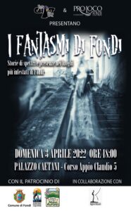 Domenica 3 aprile 2022, nella sala grande del Palazzo Caetani di Fondi, con ingresso libero osservando le regole anticovid, alle ore 18,00 sarà presentato ufficialmente il libro: “I Fantasmi di Fondi” da Italian Ghost Story e dalla Associazione Pro Loco Fondi con il patrocinio del Comune di Fondi, del Parco Monti Ausoni e Lago di Fondi, del Parco dei Monti Aurunci e la collaborazione delle Fonderie delle Arti Signor Keuner.