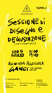 Il vino e la terra saranno assoluti protagonisti del consueto momento di disegno en plein air che, questa volta, si arricchisce del profumo e dei colori del vino, nel vero senso della parola. Il vinarello, è una tecnica dell’acquerello che prevede l’utilizzo del vino al posto dell’acqua, il quale trasfonde il colore mediante asciugatura e ossidazione di componenti come tannino e antociani, donando al disegno le sfumature sorprendenti e calde del rosso.