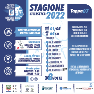 Una nuova tappa del Giro dell’Ago Pontino Opes è pronta ad andare in scena. Domenica 1 maggio è la volta della ASD Terracina Cycling Veneta Group, che coordinerà la settima gara di calendario.