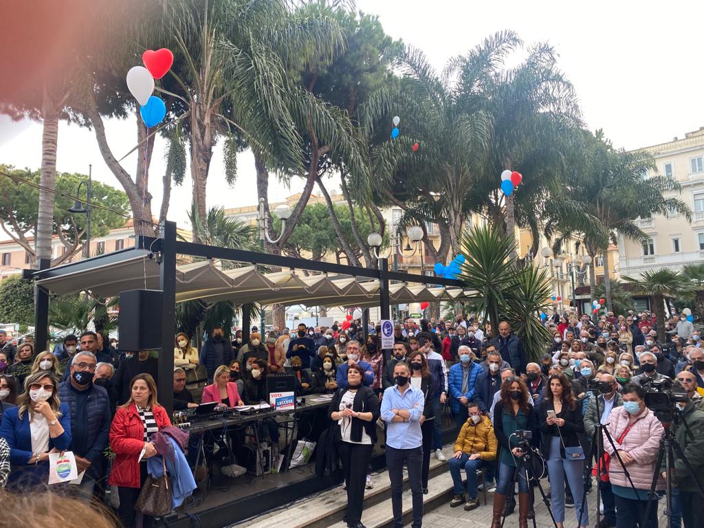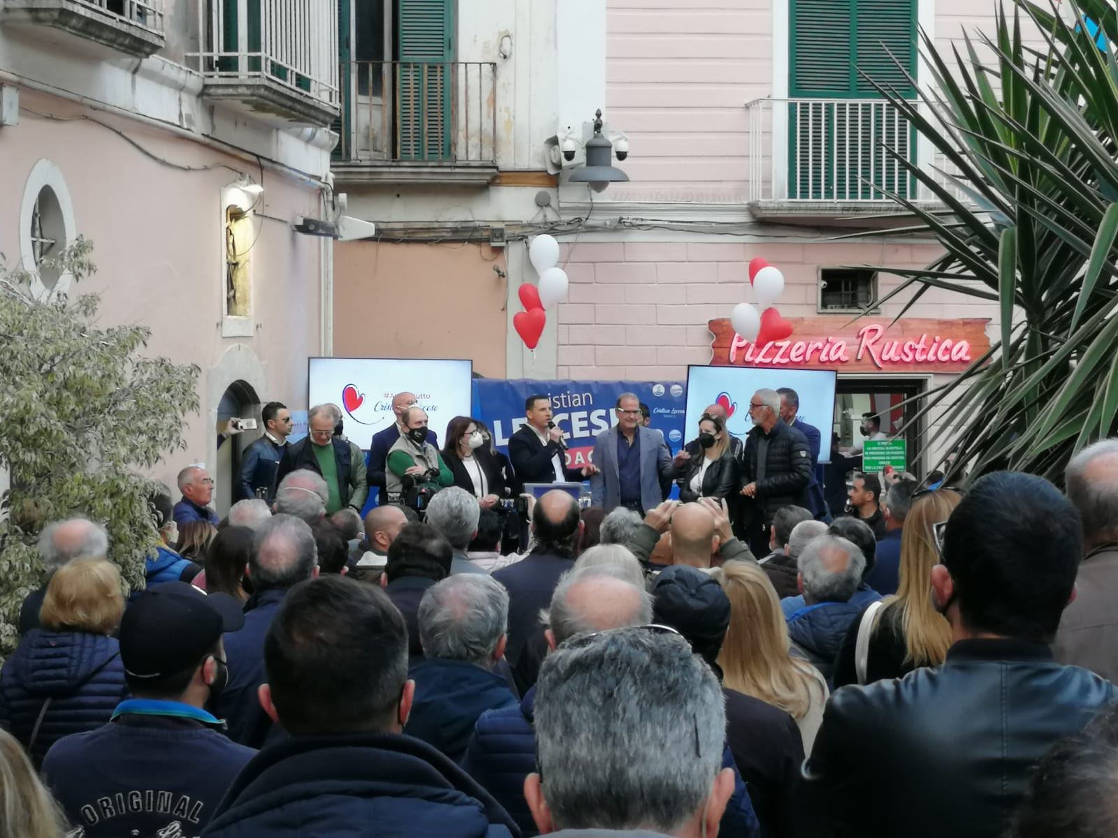 Una nuova sfida politica: quella del rinnovamento, sulla scia della continuità. È partita ufficialmente, in una gremita Piazza della Libertà, la campagna elettorale per Cristian Leccese Sindaco, alla quale hanno partecipato l’attuale Primo cittadino, Cosmo Mitrano, e i rappresentanti delle otto liste che compongono la coalizione “Avantitutta, per FARE Gaeta ancora più GRANDE”. Una serata ricca di emozioni, condotta da Cristian Di Vanni, in cui è stato ripercorso il lavoro svolto negli ultimi dieci anni dall’amministrazione Mitrano, che ha visto Cristian Leccese ricoprire i ruoli di consigliere comunale, assessore e vicesindaco, e si sono posti gli obiettivi per affrontare al meglio le sfide del futuro. Dieci anni vissuti insieme, come il titolo del video lanciato in apertura, che ha mostrato concretamente le opere progettate e realizzate, in cui sono stati investiti oltre 50 milioni di euro, dall’attuale squadra di governo, puntando alla riqualificazione e rigenerazione urbana, al recupero del patrimonio storico-culturale, all’ammodernamento ed efficientamento della rete pubblica energetica, alla creazione di nuove infrastrutture per lo sport, alla valorizzazione del turismo, anche destagionalizzato. Ed è stato proprio il sindaco Cosmo Mitrano a intervenire, sottolineando quanto sia stato intenso il cammino amministrativo: «Cristian è un ragazzo che ha dimostrato da subito di essere un giovane promettente, un talento, di avere grandi capacità amministrative e soprattutto il coraggio di continuare a far crescere la nostra Città. Perché la nostra Città ha bisogno di coraggio.