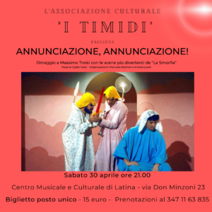 E’ dedicato agli sketch più celebri del gruppo comico “La Smorfia” lo spettacolo che l’associazione culturale I Timidi metterà in scena, per la prima volta a Latina, il prossimo 30 Aprile alle ore 21.00.