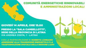 Il 14 aprile alle ore 15 la Sala Cambellotti della sede della Provincia di Latina ospiterà l’evento “Comunità energetiche e amministrazioni locali”.