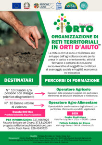 Il PROGETTO ORTO – Organizzazione di Reti Territoriali in Orti d’aiuto – cofinanziato dal POR LAZIO P.O. FSE 2014-2020 nell’ambito dell’avviso pubblico “Reti per lo sviluppo dell’agricoltura sociale per l’inserimento socio-lavorativo dei soggetti in condizione di svantaggio”, è quasi pronto per partire.