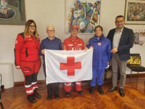 Ieri mattina la presidente del comitato di Fondi della CRI ha ufficialmente consegnato al sindaco Beniamino Maschietto la bandiera della Croce Rossa che, su iniziativa dell’Anci (Associazione nazionale comuni italiani) sarà esposta all’esterno di tutti i municipi dello Stivale. Il primo cittadino e il vice Vincenzo Carnevale hanno colto occasione per sottolineare, durante l’incontro, l’importanza umanitaria e ausiliaria che il corpo svolge sul territorio, durante le emergenze come nella quotidianità. L’iniziativa è stata promossa a livello nazionale in occasione della Giornata mondiale della Croce Rossa che ricorre domani 8 maggio quando, al fine di amplificare il messaggio, il Castello sarà illuminato di rosso.