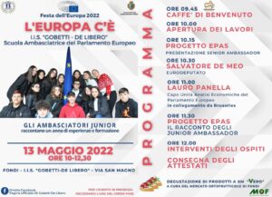 L’Istituto di istruzione superiore “Gobetti – De Libero” si prepara a celebrare l’Europa. L’evento, che gode del patrocinio del Comune di Fondi, sarà trasmesso in diretta streaming sui canali social della scuola ambasciatrice del parlamento europeo.