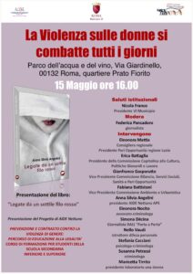 Sempre in campo contro la violenza sulla donne A.I.D.E. Nettuno organizza, in collaborazione con il Comitato di quartiere Prato Fiorito e con il PATROCINIO di Roma Capitale VI Municipio, il convegno “La violenza sulle donne si combatte tutti i giorni” che si terrà il giorno 15 maggio 2022 alle ore 16.00 presso il Parco dell’acqua e del vino. Questo convegno nasce per dire basta ad ogni forma di discriminazione e di violenza posta in essere nei confronti della donna in quanto donna affinché le donne non debbano più pagare con la vita la scelta di essere se stesse e non quello che i loro partner o la società vorrebbero che fossero. Il convegno metterà in evidenza le risorse per contrastare la violenza in tutte le sue forme. Durante il convegno verrà presentato il libro “Legate da un sottile filo Rosso” di Anna Silvia Angelini edito da Bertoni editore. Verrà inoltre presentato il Progetto dell’associazione AIDE Nettuno di prevenzione e contrasto alla violenza di genere: “Percorso di educazione alla legalità’, ”Corso di formazione per studenti della scuola secondaria di primo e e secondo grado”. Porterà i saluti istituzionali Nicola Franco, Presidente del VI municipio Federica Pansadoro, giornalista, modererà gli interventi di Eleonora Mattia, Consigliera Regionale Presidente Pari Opportunità Regione Lazio; Gianfranco Gasparutto, Vice Presidente Commissione Bilancio, Servizi Sociali, Sanità e Pari Opportunità; Fabiana Battistoni, Vice Presidente Commissione Ambiente e Urbanistica; Erica Battaglia, Presidente della Commissione Capitolina alla Cultura, Politiche Giovanili e Lavoro; Anna Silvia Angelini, presidente AIDE Nettuno APS e autrice dei libri “La violenza declinata” e “Legate da un sottile filo rosso”; Nello Vaudi, Istruttore di difesa personale metodo Kravmaga, appartenente alla Polizia di stato e collaboratore del centro d’ascolto “Uscita di Sicurezza”; l’avvocato cassazionista Eleonora Nocito, Criminologa perfezionata in criminologia minorile; Stefania Cacciani, psicologa e criminologa; Simona Dècina, Giornalista RAI1 Porta a Porta; Susanna Petrassi, criminologa; Maricetta Tirrito, Presidente del laboratorio “Una Donna”.