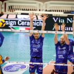 Al Palasport di Cisterna è di scena la semifinale playoff quinto posto valida per un posto in Europa, sul taraflex la sfida è tra Cisterna e Monza. Partono bene i brianzoli che guadagnano un vantaggio di più quattro grazie alle giocate di Orduna e le bordate di Grozer, 4-8. Vantaggio incrementato dalla serie di battute di Galassi che mette in difficoltà la ricezione pontina e favorisce gli attacchi di Dzavoronok, 9-16. I ragazzi di coach Soli provano a reagire e la rimonta passa per l’opposto croato Petar Dirlic, in campo anche Rinaldi al posto di Raffaelli, 14-22. Chiude il primo set Grozer, 15-25. Inizio secondo set a favore della Top Volley che sbaglia poco e difende bene con un Cavaccini ispiratissimo, Baranowicz serve una palla con il contagiri per il punto di Maar, 10-5. Bossi chiude la porta in faccia a Beretta, muro vincente per il 16-10. Doppio Raffaelli, smarcato e cercato da Baranowicz con una magia mette a terra la palla del 18-12. Scambio lunghissimo chiuso da Maar, 19-12. Muro vincente di Bossi e Cisterna porta a casa il secondo set, 25-20.
