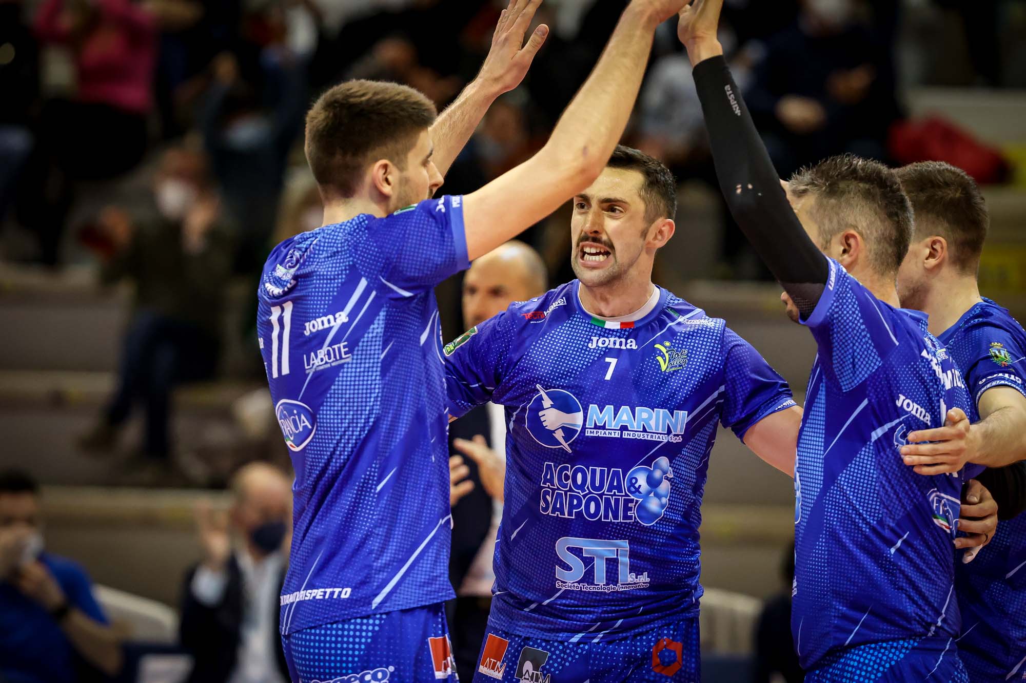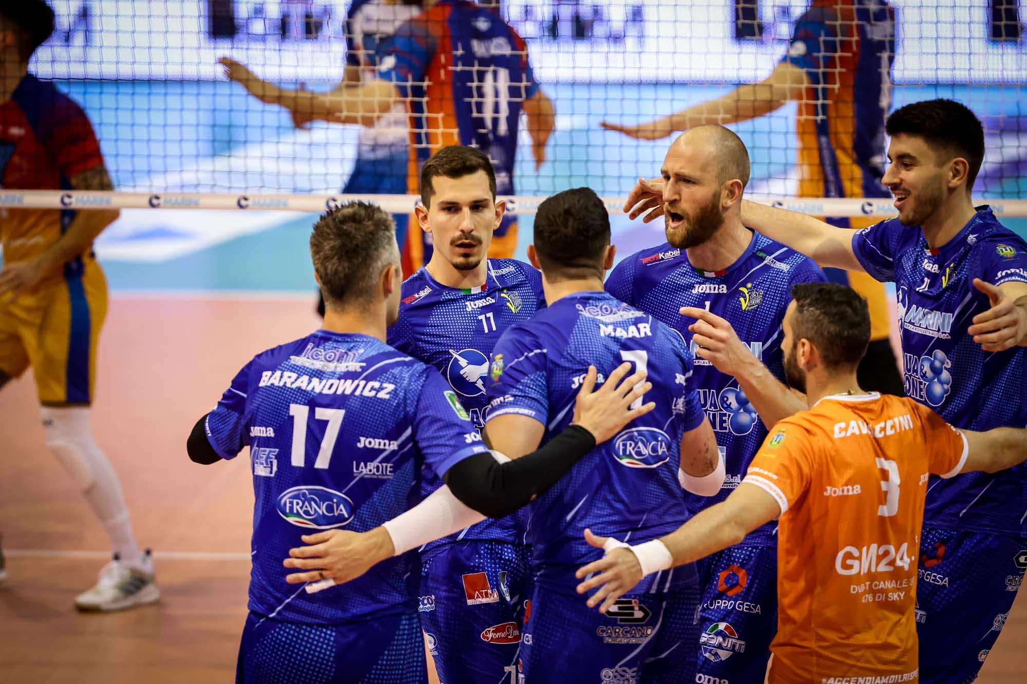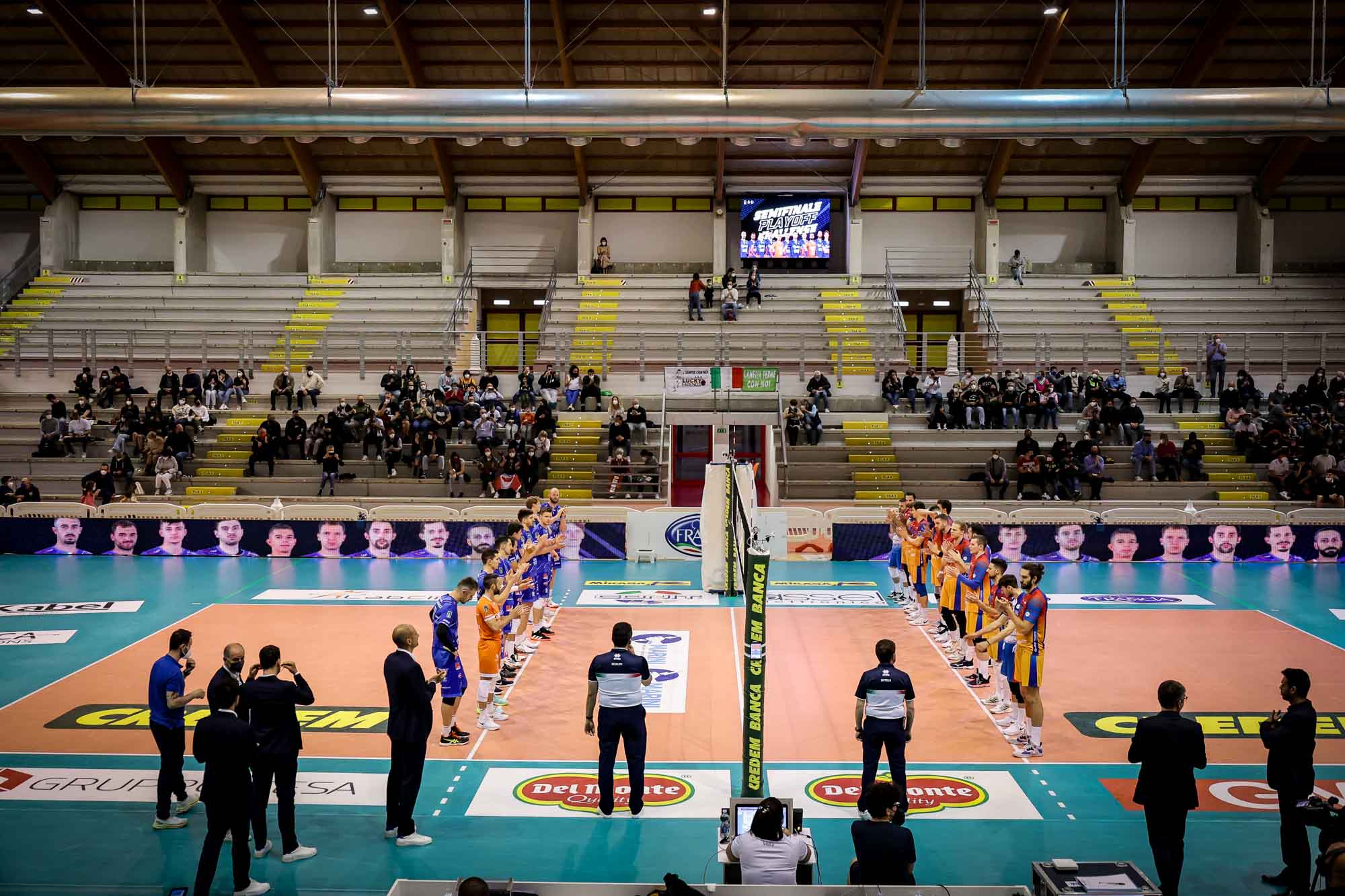 Al Palasport di Cisterna è di scena la semifinale playoff quinto posto valida per un posto in Europa, sul taraflex la sfida è tra Cisterna e Monza. Partono bene i brianzoli che guadagnano un vantaggio di più quattro grazie alle giocate di Orduna e le bordate di Grozer, 4-8. Vantaggio incrementato dalla serie di battute di Galassi che mette in difficoltà la ricezione pontina e favorisce gli attacchi di Dzavoronok, 9-16. I ragazzi di coach Soli provano a reagire e la rimonta passa per l’opposto croato Petar Dirlic, in campo anche Rinaldi al posto di Raffaelli, 14-22. Chiude il primo set Grozer, 15-25. Inizio secondo set a favore della Top Volley che sbaglia poco e difende bene con un Cavaccini ispiratissimo, Baranowicz serve una palla con il contagiri per il punto di Maar, 10-5. Bossi chiude la porta in faccia a Beretta, muro vincente per il 16-10. Doppio Raffaelli, smarcato e cercato da Baranowicz con una magia mette a terra la palla del 18-12. Scambio lunghissimo chiuso da Maar, 19-12. Muro vincente di Bossi e Cisterna porta a casa il secondo set, 25-20.
