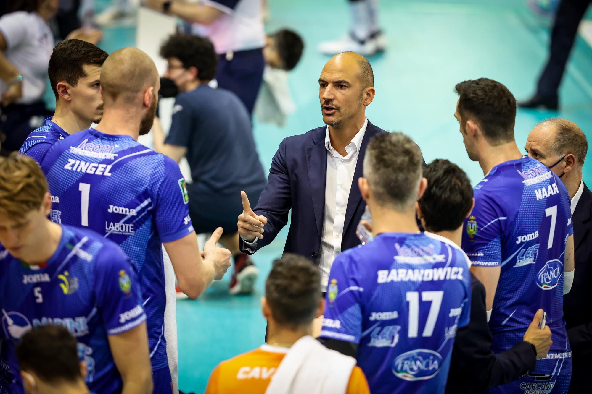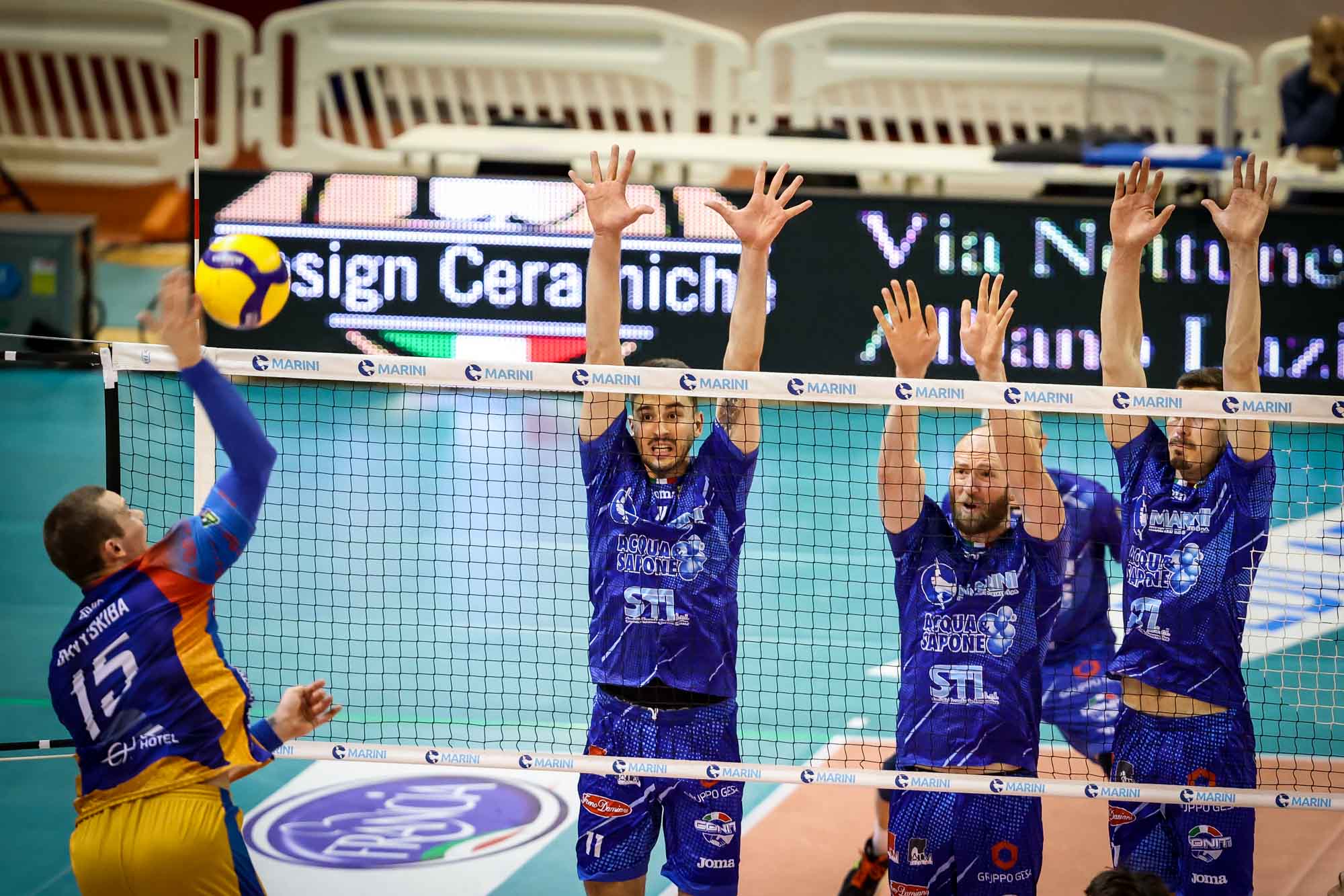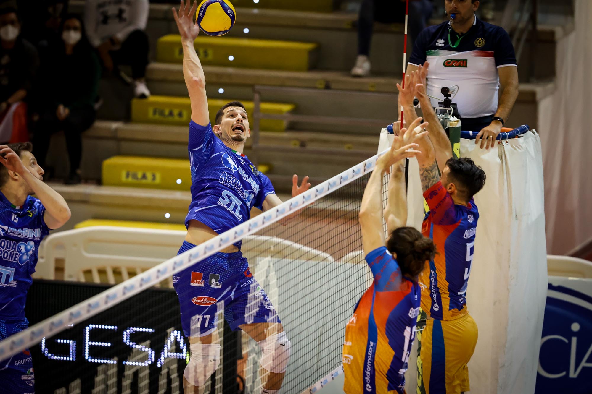 Al Palasport di Cisterna è di scena la semifinale playoff quinto posto valida per un posto in Europa, sul taraflex la sfida è tra Cisterna e Monza. Partono bene i brianzoli che guadagnano un vantaggio di più quattro grazie alle giocate di Orduna e le bordate di Grozer, 4-8. Vantaggio incrementato dalla serie di battute di Galassi che mette in difficoltà la ricezione pontina e favorisce gli attacchi di Dzavoronok, 9-16. I ragazzi di coach Soli provano a reagire e la rimonta passa per l’opposto croato Petar Dirlic, in campo anche Rinaldi al posto di Raffaelli, 14-22. Chiude il primo set Grozer, 15-25. Inizio secondo set a favore della Top Volley che sbaglia poco e difende bene con un Cavaccini ispiratissimo, Baranowicz serve una palla con il contagiri per il punto di Maar, 10-5. Bossi chiude la porta in faccia a Beretta, muro vincente per il 16-10. Doppio Raffaelli, smarcato e cercato da Baranowicz con una magia mette a terra la palla del 18-12. Scambio lunghissimo chiuso da Maar, 19-12. Muro vincente di Bossi e Cisterna porta a casa il secondo set, 25-20.