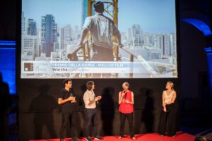 Il corto ha conquistato i quattro professionisti del settore cinematografico chiamati quest’anno a votare i cortometraggi selezionati dal direttore artistico Cristian Scardigno, «per l libertà con cui dipinge una prigione sociale attraverso un linguaggio sorprendente, in grado di rivelare la bellezza delle arti e della diversità». Warsha racconta di Mohammad, un operatore di gru a Beirut che un giorno si offre di salire su una delle gru più alte e pericolose di tutto il Libano. Lontano dagli occhi di tutti, riesce finalmente ad esprimere la sua passione segreta e a trovare la sua libertà. La regista ha inviato un sentito videomessaggio di ringraziamento, essendo impossibilitata a presenziare perché impegnata sul set del suo primo lungometraggio. Ha ringraziato anche a nome del protagonista del corto, Khansa, al quale è andato il Premio Mobilitazioni Artistiche al Miglior interprete.