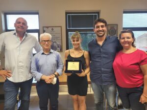 Prosegue la consegna di riconoscimenti ai talenti che si stanno distinguendo al livello nazionale e internazionale esportando il buon nome della Città di Fondi. L’ultimo premio simbolico è stato conferito dal sindaco Beniamino Maschietto, dall’assessore allo Sport Fabrizio Macaro e dal presidente dell’omologa commissione Cristian Peppe ad Alessia Pecchia, giovanissima concittadina ma già una stella nel mondo della danza.