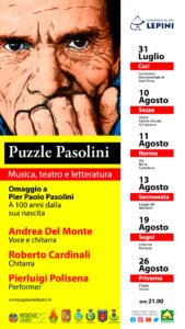 I cento anni dalla nascita di Pier Paolo Pasolini sono stati ricordati con diverse iniziative realizzate in tutto il Paese e la Compagnia dei Lepini ha deciso di organizzare un tour dello spettacolo di Andrea Del Monte proprio per celebrare il poeta, scrittore, regista, sceneggiatore, attore e drammaturgo italiano morto ad Ostia nel 1975. Il giovane cantautore pontino ha dedicato al poeta friulano un libro che contiene ventuno interviste, tre racconti e undici canzoni.