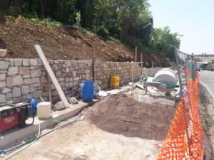 Circa invece l’angolo acuto della soletta di fondazione del rivestimento in pietra, è stata data specifica disposizione alla ditta appaltatrice per lo smusso dello stesso.