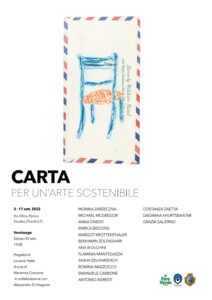 La parola “carta” assume nel vocabolario portoghese un significato diverso da quello che ha per la lingua italiana. In portoghese questa parola significa infatti lettera, messaggio scritto verso qualcuno con cui non si può comunicare direttamente: non è più solo materia “vuota”, in attesa di un utilizzo da parte dell’uomo, ma diventa essa stessa contenuto e significato, anima, che vuole essere ascoltata, capita. Carta intesa, dunque, come veicolo del messaggio più urgente di cui abbiamo bisogno: un richiamo alla responsabilità nei confronti della natura e del prossimo. Partendo da questi concetti, Luciana Pretta ha invitato artisti provenienti dai quattro angoli del mondo, a dare un messaggio di “arte sostenibile” attraverso i loro lavori, in un’esposizione di due settimane nell’antico quartiere ebraico di Fondi. La carta diventa “materia viva”, portatrice di vita e, anzi, testimone di rinascita, evidenza della possibilità di iniziare una nuova vita. Le opere esposte, infatti, sono in gran parte realizzate in carta riciclata o riutilizzata. Creazioni del genio e della sensibilità di questi quindici artisti, che hanno visto la carta, hanno ascoltato la sua storia e ne hanno compreso significato e potenziale. Le riviste, i quotidiani, i flyer, le brochure, gli imballaggi, sono oggetti che nascono per avere una vita limitata. Assecondano il pensiero dell’uomo moderno, preso dalla sua vita frenetica, dove tutto diventa scarto in un batter d’occhio. La mostra “Carta. Per un’arte sostenibile” vuole essere messaggio di eco-sostenibilità, verso una umanità “che non mastica e sputa”, ma che sceglie di riusare, di trasformare, di vivere in armonia con la natura.