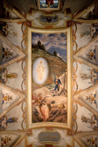 Il Servo di Dio Gabriele Mattei nacque a Lenola nel 1579. A 23 anni, nell’anno 1602, mentre è nell’atto di vendicarsi per un’offesa ricevuta, ispirato dalla grazia di Dio e dagli splendori della Vergine Maria, è segnato da un radicale mutamento di vita. Quale segno di questa ritrovata vita si consacra alla missione di costruire una degna “casa” alla Vergine, in cui si stabilirà come “ostiario” dopo un periodo di pellegrinaggio attirando da ogni dove folle di devoti e pellegrini e da cui veniva chiamato con il nome di Deo Gratias.