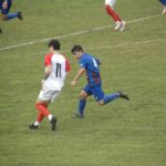 La Vis spicca in mezzo al campo, non solo per la nuova tenuta bianca con ampie bande rosse lungo spalle e braccia: lo fa fin da subito per l’intraprendenza dei leoni di mister Giannone nel cercare varchi stretti, nel sondare appoggi corti e fulminei, soprattutto dalle parti di Onorato e Romani. Ed è proprio di Onorato il primo squillo di tromba, quando cerca l’angolo più lontano con un bel calcio piazzato dopo otto minuti.