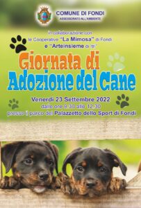 Anche il Comune di Fondi celebra la Giornata Mondiale del Cane adottato che ricorre in tutto il pianeta venerdì 23 settembre. Trovare una famiglia ai piccoli amici a quattro zampe che non ne hanno una, ridurre l’affollamento nei canili, sensibilizzare la collettività al tema dell’adozione e contrastare il fenomeno dell’abbandono sono alcuni degli obiettivi dell’iniziativa.