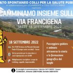 Domenica 18 settembre appuntamento a Campo Santo vecchio per una passeggiata lungo il tratto della Via Francigena. L’evento organizzato dal Comitato Spontanei Colli per la Salute Pubblica in collaborazione con Legambiente e Colli tutto l’anno ha lo scopo di far scoprire le bellezze storiche e paesaggistiche che si trovano su uno dei tratti del dorsale pontino della Via Frangine amato dai tanti pellegrini che attraversano il nostro paese ogni giorno.