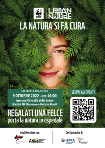 Il WWF Italia nel fine settimana del 8 e 9 ottobre festeggerà la VI edizione di “Urban Nature: la festa della Natura in città”. In tutta Italia, volontarie e volontari saranno presenti in oltre 1.600 piazze per promuovere e raccogliere fondi destinati al progetto “Aule Natura negli ospedali pediatrici”, attraverso la distribuzione di una piantina di felce in vaso.