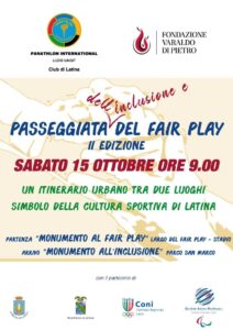 E’ in programma sabato 15 ottobre 2022, con inizio alle ore 9,00, “La passeggiata del Fair Play e dell’inclusione”.