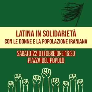 Si organizza per le ore 16:30 di oggi 22 ottobre, in piazza del Popolo a Latina, un momento solidale alle donne e alla popolazione iraniana. A circa un mese dall’arresto di Mahsa Amini, le azioni violente e disumane della ‘Polizia Morale’ non accennano a placarsi.