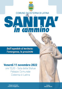 Si terrà venerdì 11 novembre alle ore 15, presso la Sala delle Statue del Palazzo dei Servizi di Cisterna, il convegno dal titolo: “Sanità in cammino. Dall’ospedale al territorio: l’emergenza, la prossimità”, organizzato dall’Amministrazione comunale.