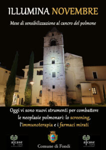 Il campanile della chiesa di San Francesco si illumina di bianco per sensibilizzare la cittadinanza sul tema della prevenzione del cancro al polmone. Anche il Comune di Fondi, con apposita delibera di giunta, ha infatti aderito all’ottava edizione della campagna “Illumina Novembre”, promossa dalla Fondazione ALCASE ITALIA ODV.