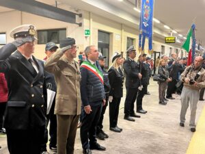 “Celebrare il ‘Treno della Memoria’ – ha sottolineato il sindaco Gianluca Taddeo – significa rimettere al centro i valori democratici del nostro Paese e rendere il doveroso omaggio a coloro che hanno combattuto per la Patria. Il Milite Ignoto è un simbolo della nostra identità, della nostra storia e la presenza imponente e partecipativa, ieri sera, di tutte le istituzioni, delle associazioni, del mondo del volontariato e anche di comuni cittadini, testimonia il profondo valore e legame umano e morale e di particolare sensibilità che la nostra comunità ha espresso sentitamente nei confronti di chi si è sacrificato per l’Onore della Patria”. Il treno storico, allestito da Fondazione FS Italiane e dal Reggimento Genio Ferrovieri, è composto da una locomotiva a vapore Gr. 740, un bagagliaio 1926, un carro K, due carrozze “Centoporte”, una carrozza “Centoporte a salone”, un carro “Carnera”, una carrozza prima classe Az 10.000, una carrozza “Grillo”, una carrozza cuccette tipo “1957 T” e una locomotiva diesel; a bordo anche una mostra immersiva multimediale e commemorativa.