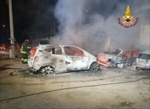 Sul posto, località Capo Croce, la squadra territoriale vvf di Terracina constatava la presenza di un importante incendio di circa 5 auto all’interno di un area all’aperto e circoscritta.