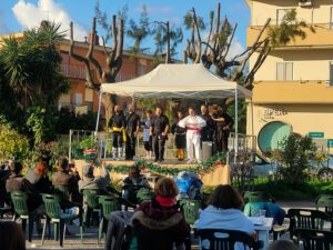 Tutto condito con la musica e la poesia di artisti locali, nostri carissimi amici: Marina Di Marco, Maria Ausilia D’Antona, Luisa Raffaelli, Loris Zecchin, Gloria Pistolesi, Archetipo Ensemble, Martina Pavia, Elena Castellacci, i giovanissimi esordienti fratelli Arganini, il giovanissimo violinista Alessandro Simboli e la altrettanto giovane chitarrista Immacolata Scarpellino della Scuola musicale Manzoni di Latina. A chiusura della serata, la simpatica performance delle “Coriste per caso”, in cui tutte le suddette artiste, riunite con me in un estemporaneo concertino, si sono cimentate in canti e carols natalizi, accompagnate dalla Archetipo Ensemble.