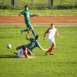E sullo scadere dei primi quarantacinque minuti, ecco che viene messa in scena l’azione più luminosa della partita: Pereira Moda e Vanini si corteggiano a passo di danza, ma il traversone corto per l’accorrente Valente viene indirizzato dal difensore setino appena mezzo millimetro più in alto della traversa.