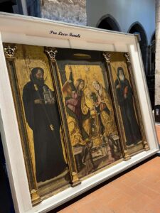 Per questa importante esposizione sono state scelte alcune delle opere più belle e rappresentative del patrimonio artistico italiano. Ed uno di questi capolavori è partito proprio da Fondi. Si tratta del trittico dell’Annunciazione di Cristoforo Scacco del 1499. L’opera, con la supervisione del dottor D’Attanasio che ha curato tutte le relazioni, dopo esser stata sottoposta ad accurate operazioni di pulitura, è stata asportata dalla Cappella della Croce, sita nella navata di destra del duomo di San Pietro affidata al parroco don Gianni Cardillo, ed è partita alla volta di Roma dove verrà infine restaurata e messa in esposizione nelle Scuderie del Quirinale.