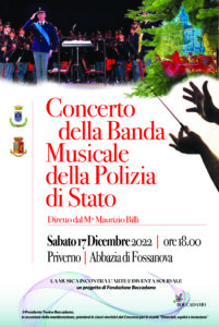 A contribuire a rendere piacevoli le giornate che ci avvicinano al Natale, anche la Banda Musicale della Polizia di Stato, che si esibirà in Concerto, sabato 17 dicembre, alle ore 18,00, nell’Abbazia di Fossanova.