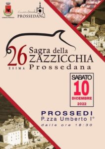 Sarà un sabato speciale a Prossedi con la 26^ edizione della storica Sagra della Zazzicchia prossedana, l’appuntamento che catalizzerà l’attenzione degli appassionati della gastronomia lepina ma anche della cultura, delle tradizioni e della musica. Il Natale si avvicina e a Prossedi il fermento non manca, visto che sono molte le iniziative per chi vorrà godersi i caratteristici Vicoli, la piazza e tutte le bellezze che circondano il delizioso paesino in provincia di Latina ai confini con la Ciociaria.