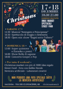 Christmas Town trasforma Hacienda, la nuova location d’eccezione nel cuore della Tiburtina, in una fiabesca oasi natalizia innevata, e promette un Natale con i fiocchi.