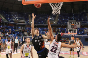La Benacquista Assicurazioni Latina Basket è stata costretta ad affrontare la trasferta sul campo dell’Urania Milano in formazione decisamente rimaneggiata. Le assenze di Fall e Cicchetti, hanno pesato molto sulle rotazioni del team pontino, soprattutto di fronte a un avversario che nella prima metà di gara ha avuto percentuali molto alte al tiro e che, ovviamente, ha ben sfruttato la maggiore fisicità nella lotta al rimbalzo (42-21 per i lombardi il conteggio dei rimbalzi a fine gara). Positivo il contributo di Alberto Cacace (10 punti con 3/4 da 2 e 1/1 da 3 e 1/2 ai liberi in 11 minuti di utilizzo) al suo rientro dopo la lunga assenza, che però non è certamente ancora al top della condizione.