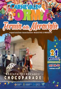 Parte attiva è stata la Pro Loco città di Formia, a cui è affidata l’organizzazione, il 19 e il 21 febbraio, delle sfilate degli artisti mascherati, dell’animazione danzante delle associazioni ed enti parrocchiali, che culmineranno nella sfilata per le vie della città dei tradizionali carri, a cui si aggiungeranno quelli del vicino comune di Santi Cosma e Damiano.